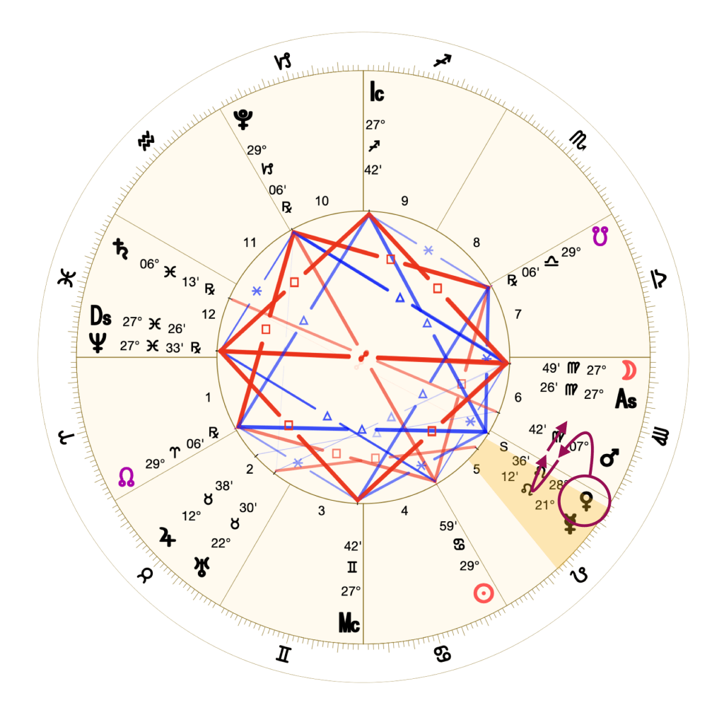 VENUS starts her RX motion in your 5th House, covering the area highlighted below: