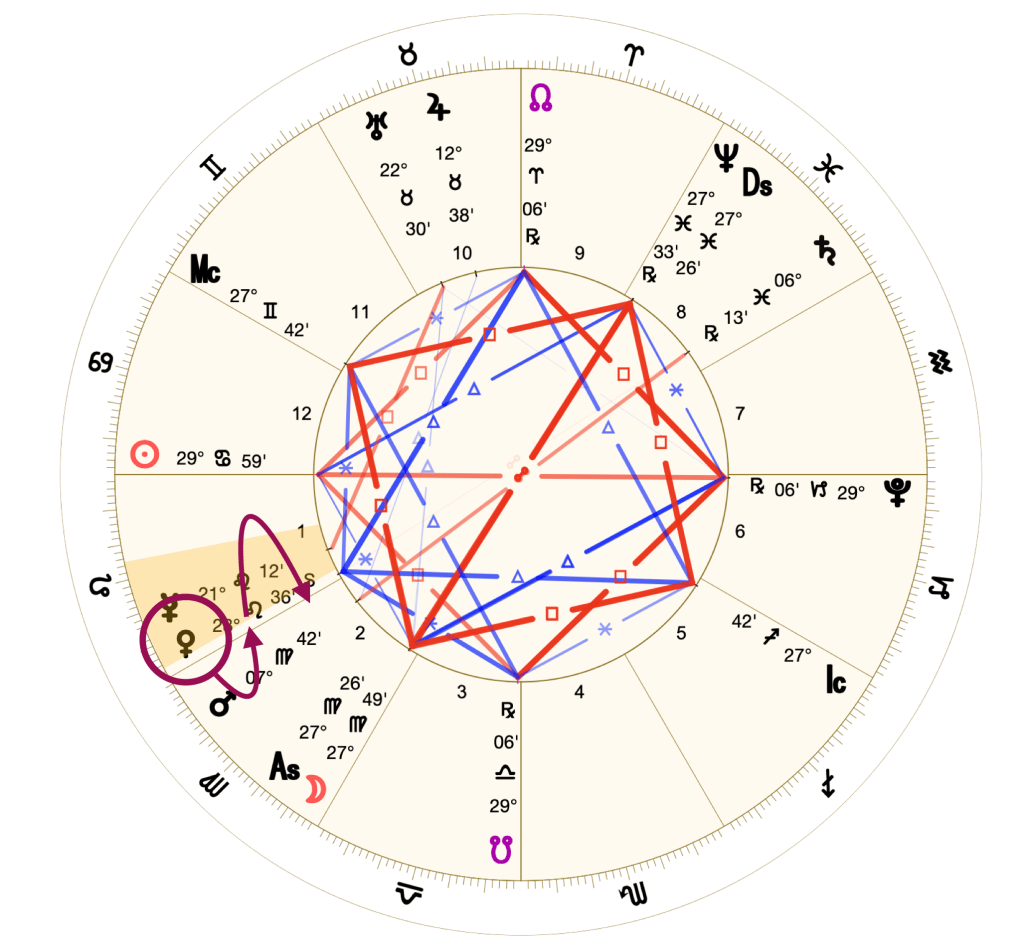 VENUS starts her RX motion in your 1st House, covering the area highlighted below: