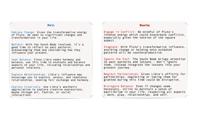Here’s to finding the courage and commitment to actively foster a world where harmony prevails, not as a passive aspiration, but as an active, daily practice. May our actions reflect our deepest values, and may we create spaces where justice and love coexist effortlessly. It might not be easy to arrive at this ideal, but it is worth trying and fighting for. Remember too, that we are just starting on this process of change. There is time to adjust and soak everything in, dear reader; after all, themes that come up now are going to be recurring strongly throughout the remainder of this eclipse cycle, which lasts until 2025!