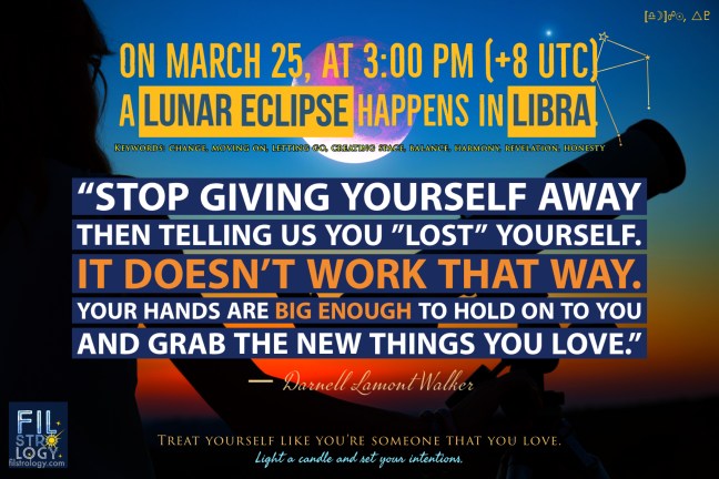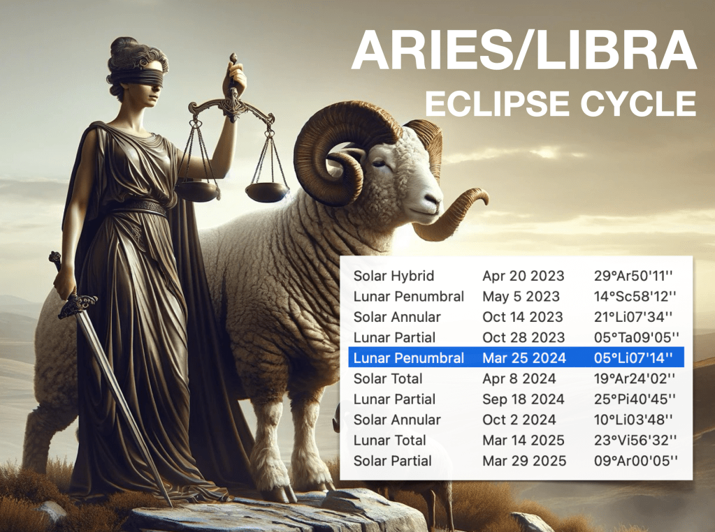 A Full Moon Penumbral LUNAR ECLIPSE happens on March 25, 2024 (3:00 PM, Philippine Time), at exactly 5°07′ of the realm of cardinal air, LIBRA, the sign of BALANCE.
