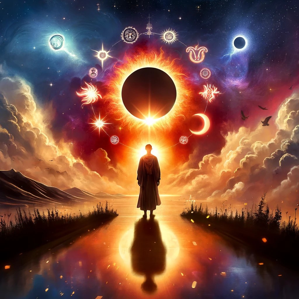 This unique configuration of this Total Solar Eclipse challenges us to confront and reconcile the various aspects of ourselves—the visible and the hidden, the bold and the vulnerable. It teaches us to persevere through tough, seemingly insurmountable challenges, reminding us that true courage lies in the ability to press forward despite overwhelming fear. As we advance, facing inevitable setbacks and delays, the eclipse teaches us the importance of patience. After all, patience is not mere passivity, but a deliberate state of calm in the face of urgency and turmoil. This reveals that the true measure of virtue lies in our ability to maintain composure during moments that trigger our deepest provocations.