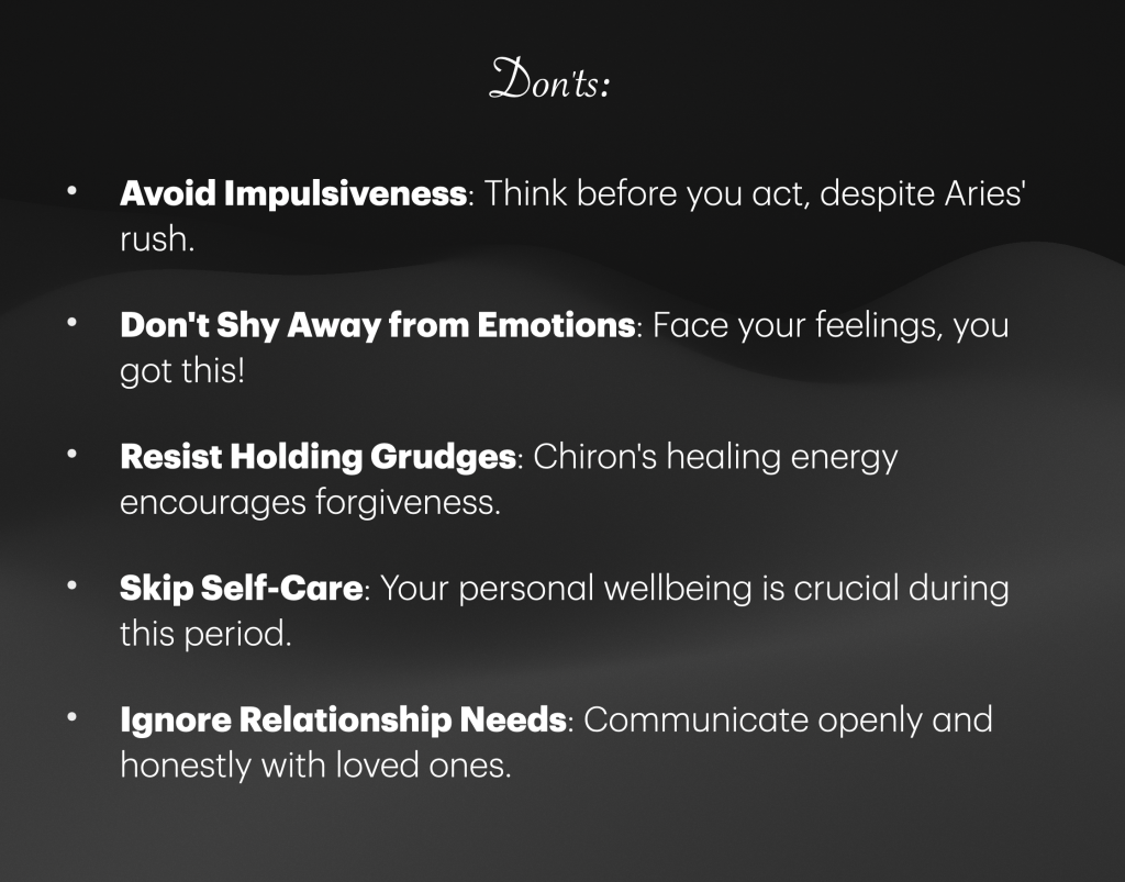 The eclipse acts as a driving force, dear reader, urging us to dive deep into our inner selves, to face our fears, and to express our desires and aspirations. It invites us to see our vulnerabilities not as shortcomings but as fountains of true strength and authenticity. By confronting our triggers and choosing to hold our ground, we truly capture the essence of Aries – endurance, indomitable will, and the unwavering bravery to forge our own path.