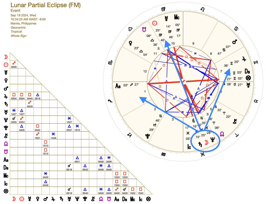 A Full Moon Partial LUNAR ECLIPSE happens on September 18, 2024 (10:34 AM, Philippine Time), at exactly 25°40′ of the realm of mutable water, PISCES, the sign of the mystic.