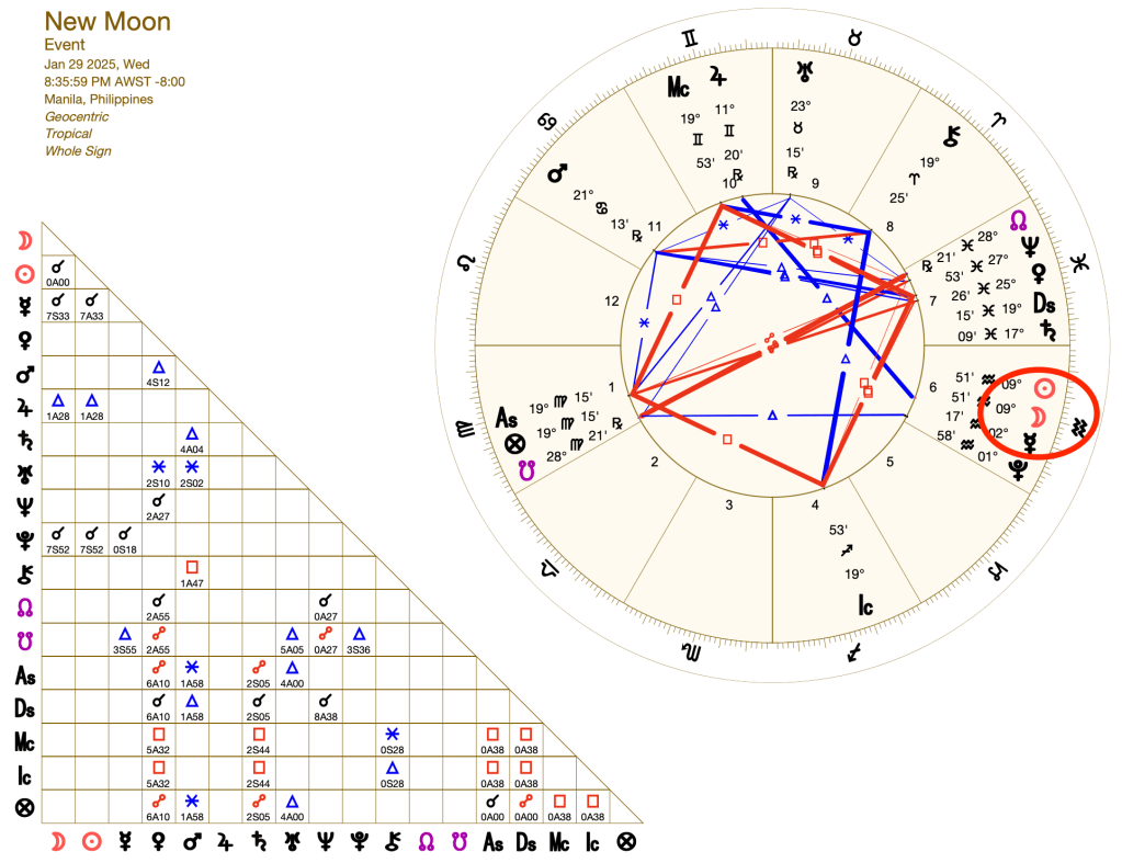 On January 29, 2025 (8:35 PM, Philippine Time), at exactly 9°51 minutes, a NEW MOON happens in the realm of Fixed Air: AQUARIUS, the sign of Man.