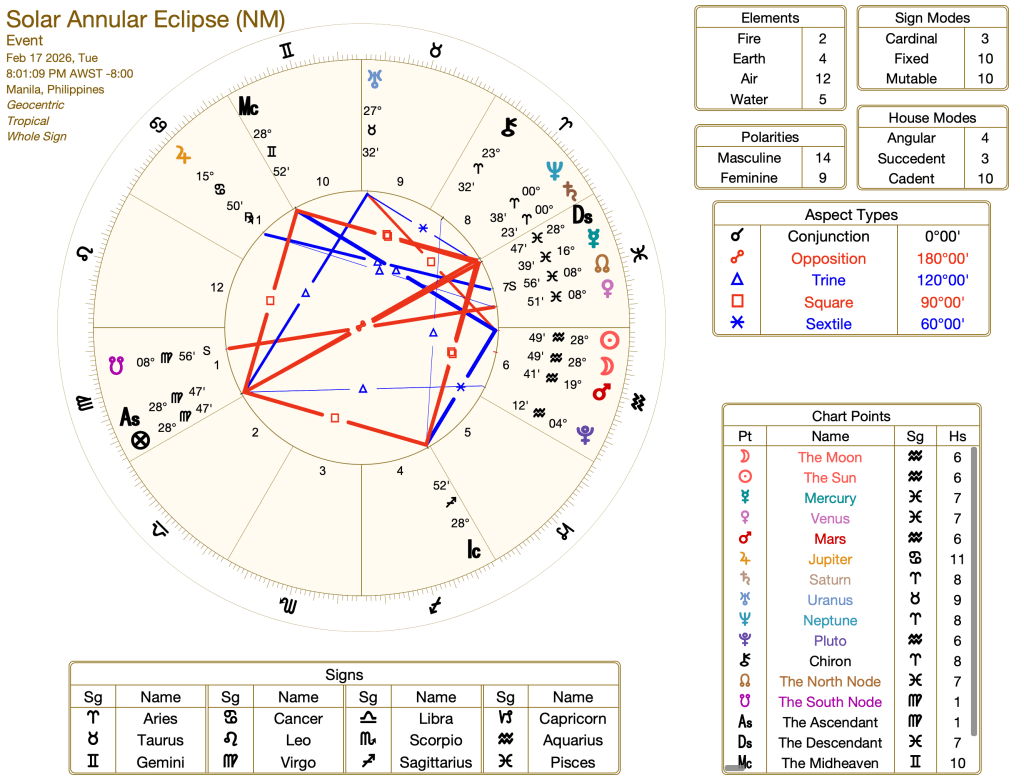 The first solar eclipse in Aquarius in nearly nine years arrives on February 17, 2026, at 28° Aquarius—an annular “ring of fire” New Moon that kicks off a fresh Leo-Aquarius eclipse series running all the way through 2028. As the opener of 4 powerful eclipses in the area of our charts where this lands, we may expect sudden clarity, liberation, and innovation: it plants bold new seeds while closing doors on outdated friendships, group dynamics, or visions of the future that no longer fit, urging us to embrace our unique quirks and rebel against conformity in electrifying ways!