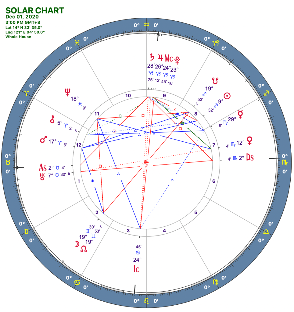 The 8th house runs deep, and Venus here is intense – hindi siya satisfied dito with shallow encounters. Hindi pang small talk ang energy na ito. Conversations are rewarding when you share your fears, dreams, and your innermost thoughts. Intimacy is important now, and your aura reflects this! Relationships now may be tricky. If on the rocks na, ma ha-highlight ang power struggles. If ok naman kayo, this may be a good period for passion. Money-wise, this transit may be helpful, just in time for Christmas! You may receive monetary gains indirectly, through your long term partner, who may earn extra under the influence of this transit! Given the global situation, it may not be as much, pero anything helps ‘di ba?