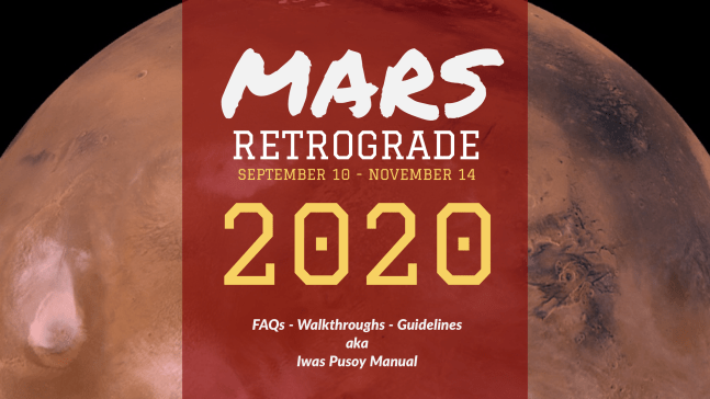 Welcome to your Mars Retrograde 2020: Iwas Pusoy Manual! Grab a snack, turn on the fan, and let's start! For those who already know what Mars Retrograde is all about, Click here for the forecast links below the page! Para naman sa mga medyo confused at curious pa, as always, mag Mars Retrograde 101 muna … Continue reading MARS RETROGRADE 2020: S.O.S. Manual for ALL ZODIAC SIGNS!