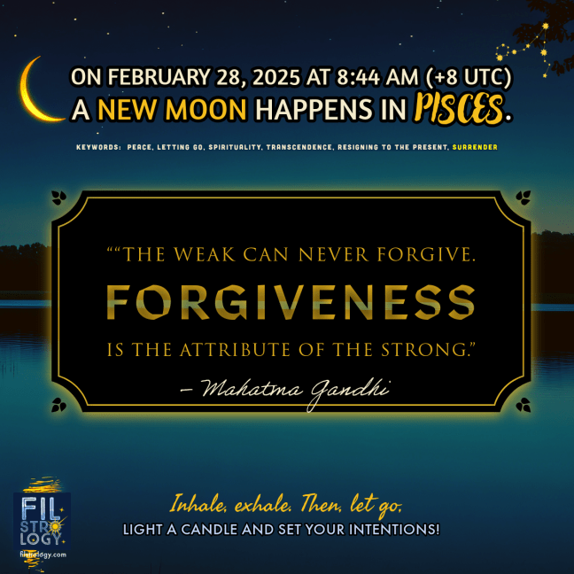 On February 28, 2025 (8:44 AM, Philippine Time), a NEW MOON happens in the realm of Mutable water: PISCES, the sign of the Mystic. The New Moon marks the beginning of a fresh lunar cycle, making it the perfect time for new beginnings. It’s an opportunity to set intentions, start fresh, and lay the groundwork … Continue reading February 28, 2025: NEW MOON in PISCES